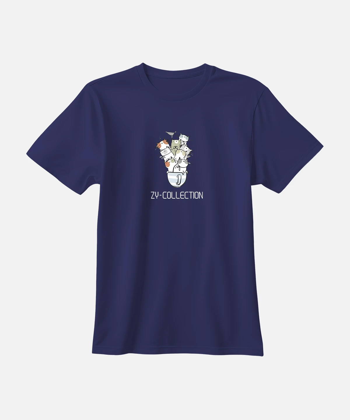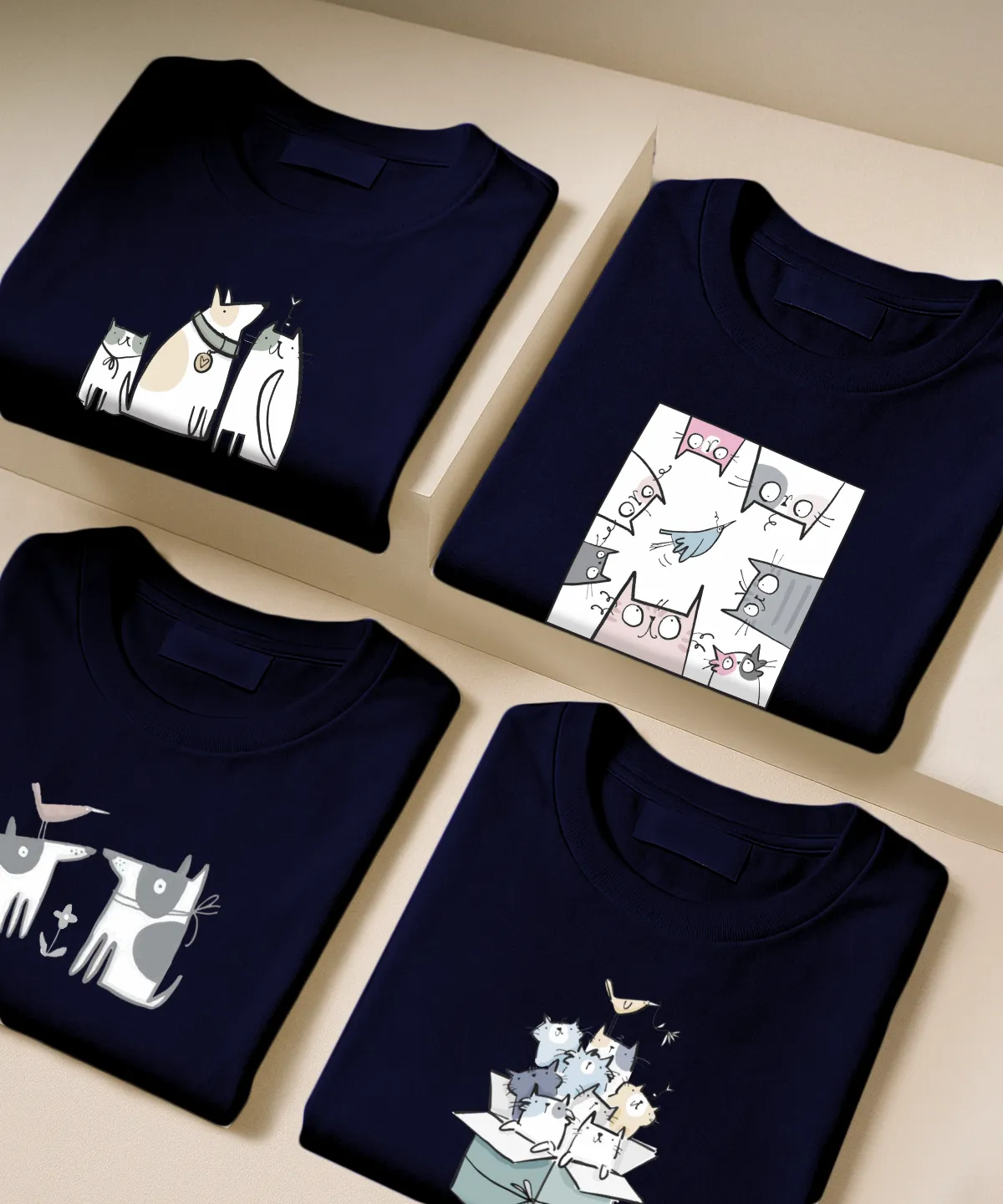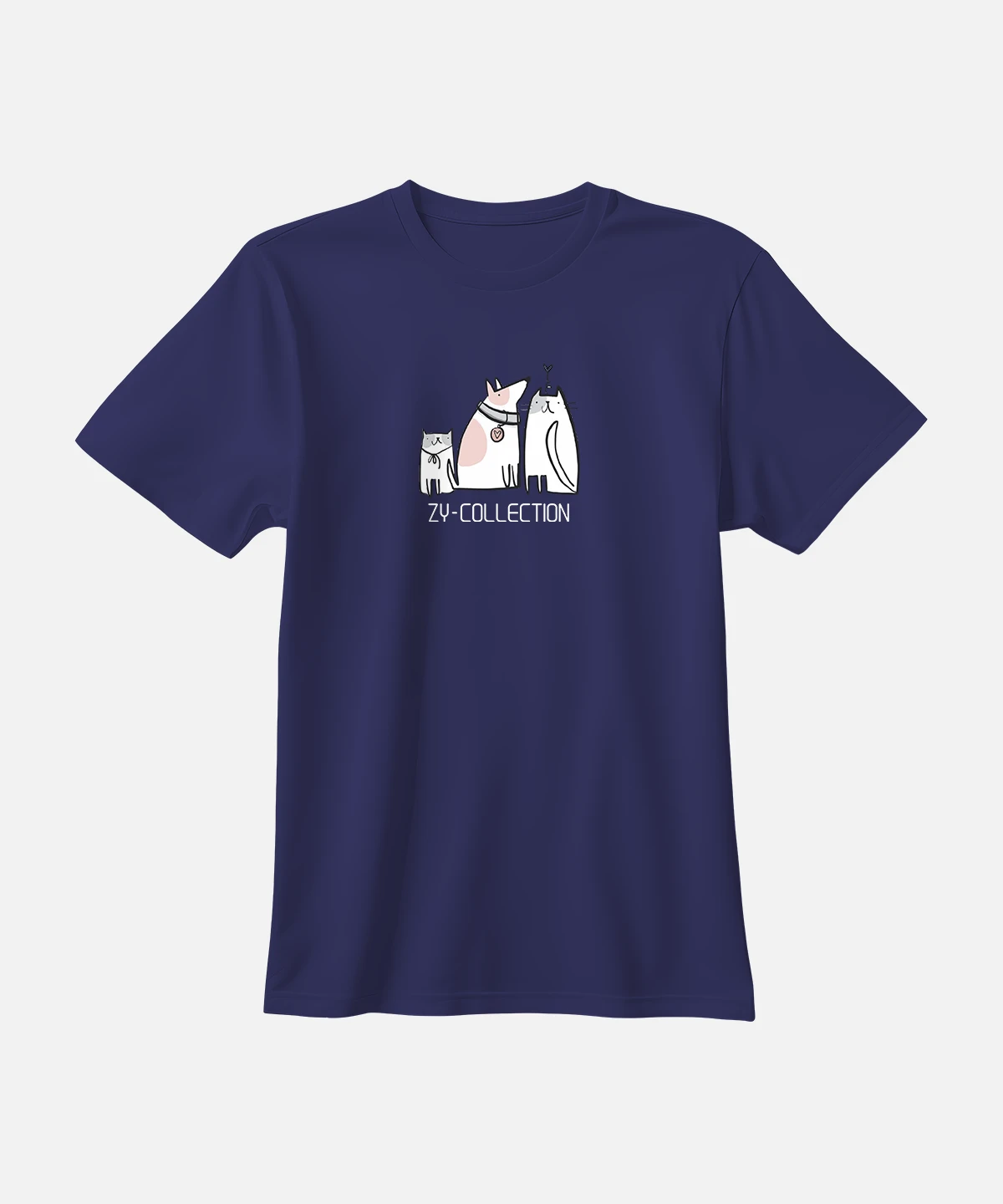 تیشرت سورمه ای نخ پنبه طرح سگ و گربه