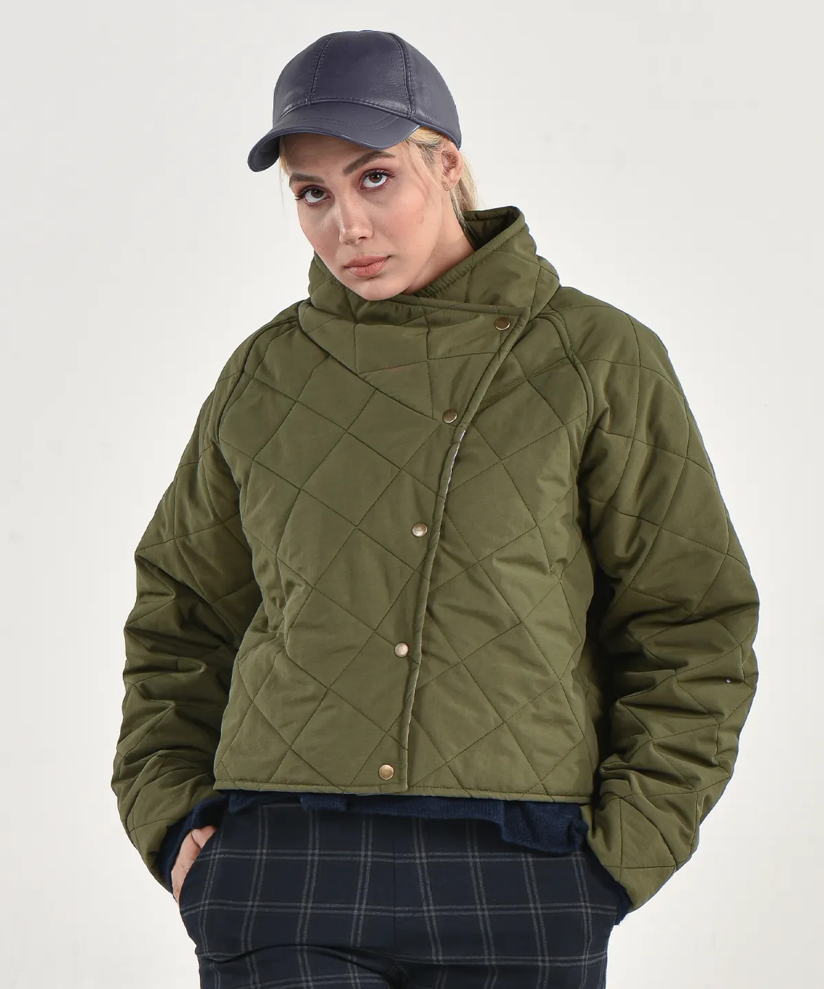 کاپشن دکمه ای یقه ایستاده مدل نازنین