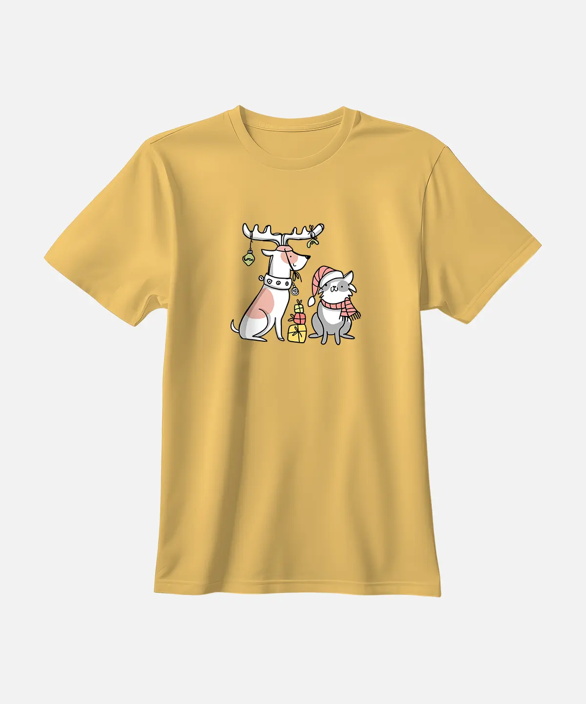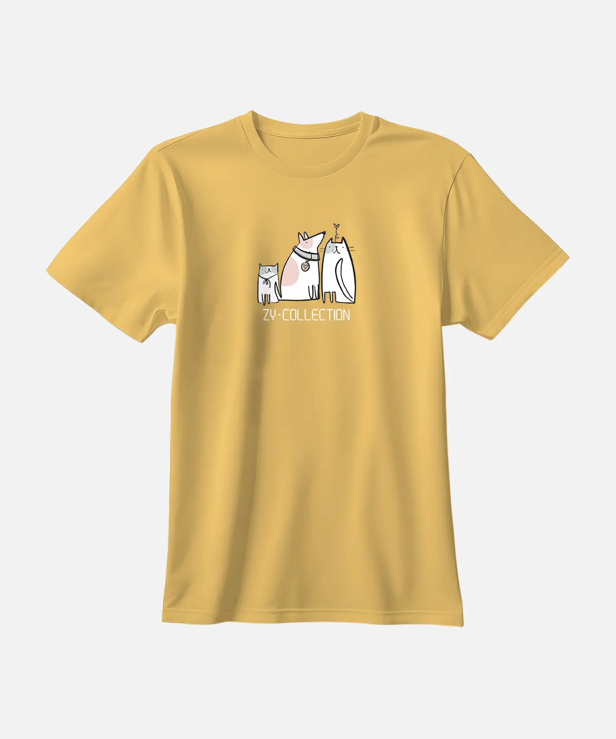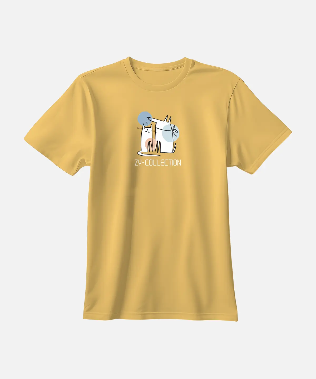 تیشرت کرم نخ پنبه طرح سگ و گربه