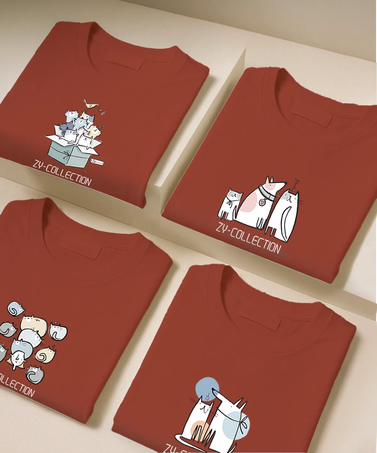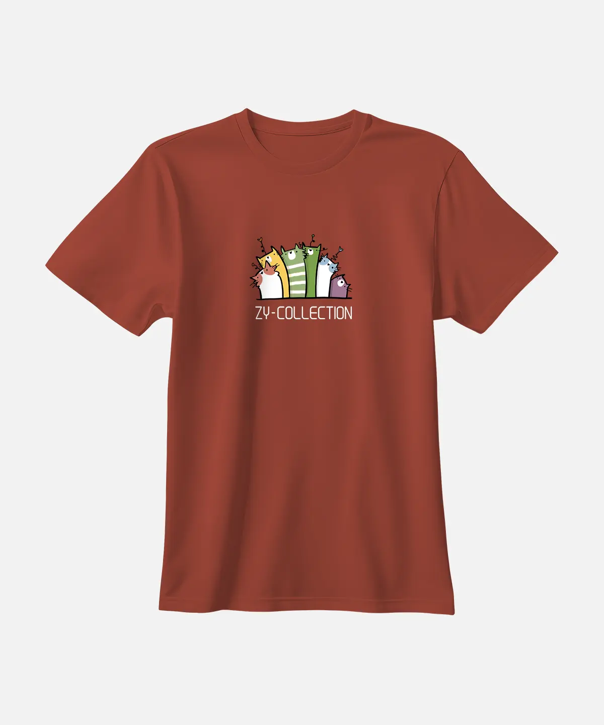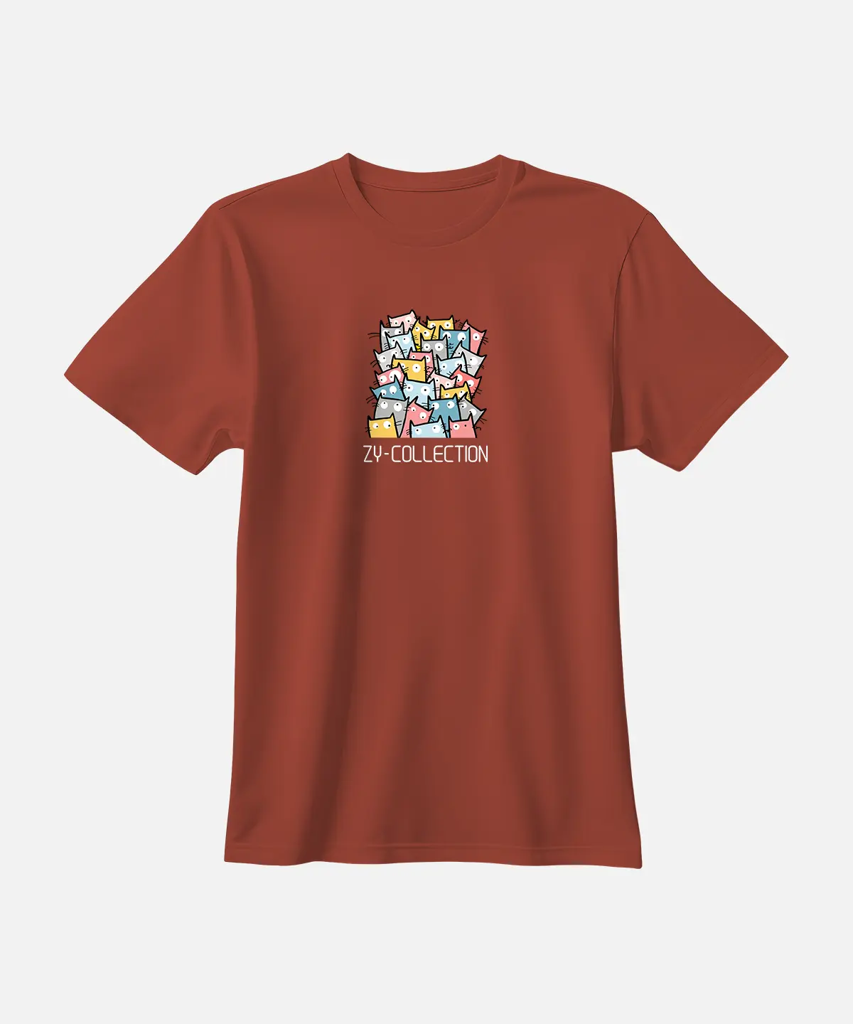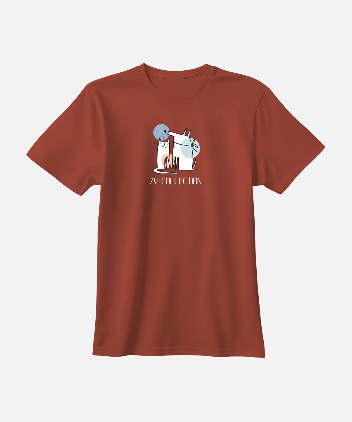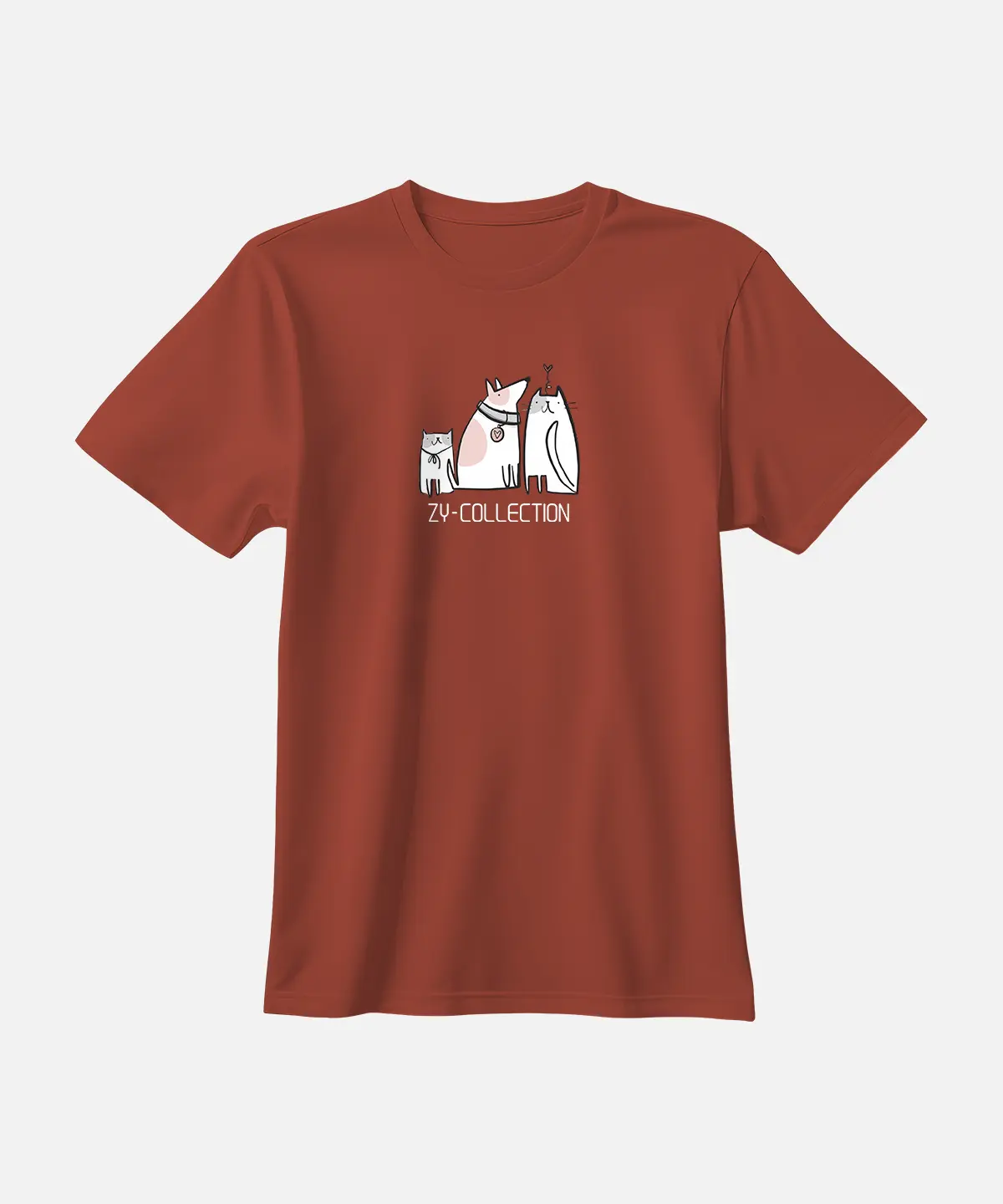 تیشرت آجری نخ پنبه طرح سگ و گربه